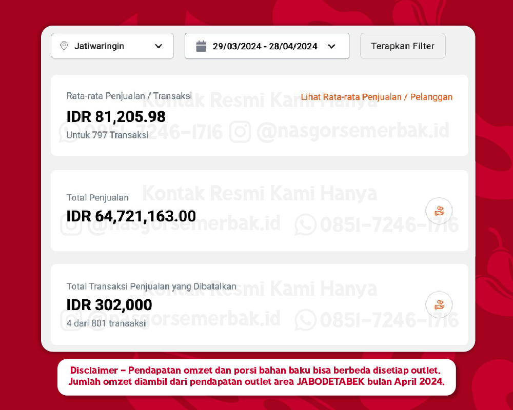 Catatan: Kinerja omzet pasti akan berbeda di tiap outlet mitra, bisa lebih tinggi atau rendah.