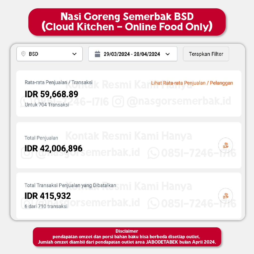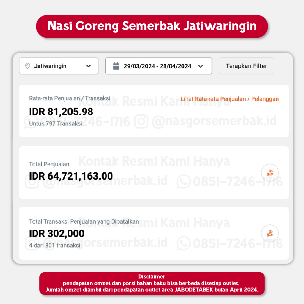 Catatan: Kinerja omzet pasti akan berbeda di tiap outlet mitra, bisa lebih tinggi atau rendah.